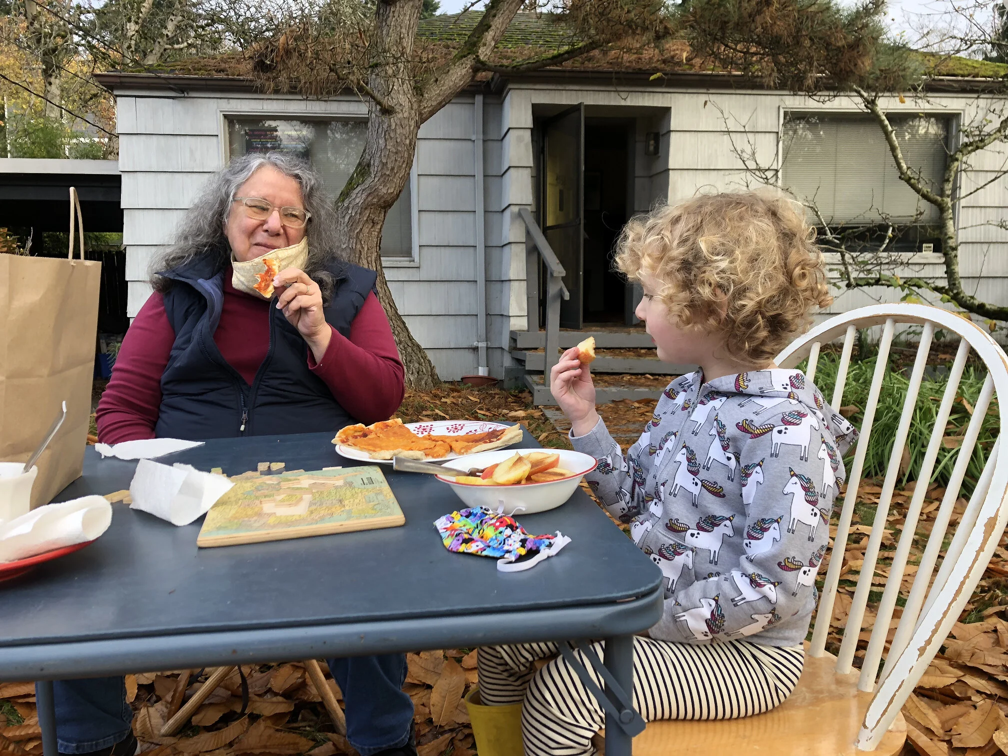 Maya and Baban having a snack at Baban’s house after the trip.