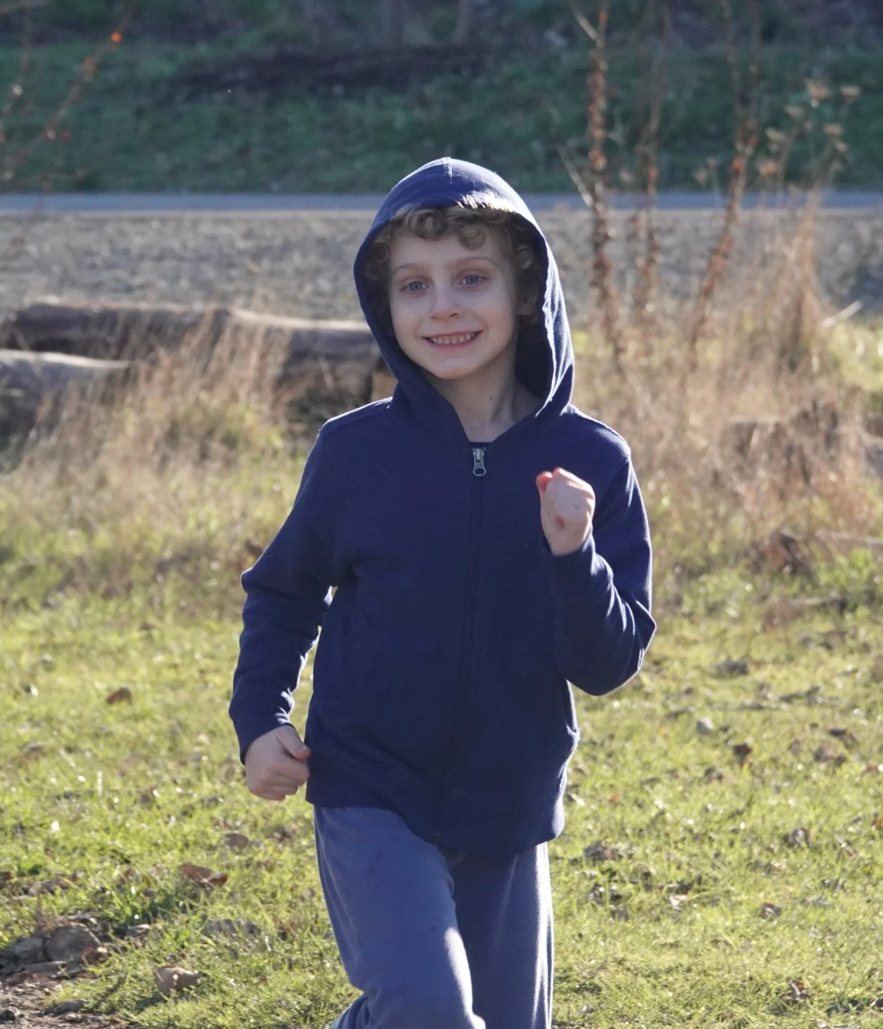 Leon approaching bridge. Leon loves being outdoors—so many interesting things to look at.