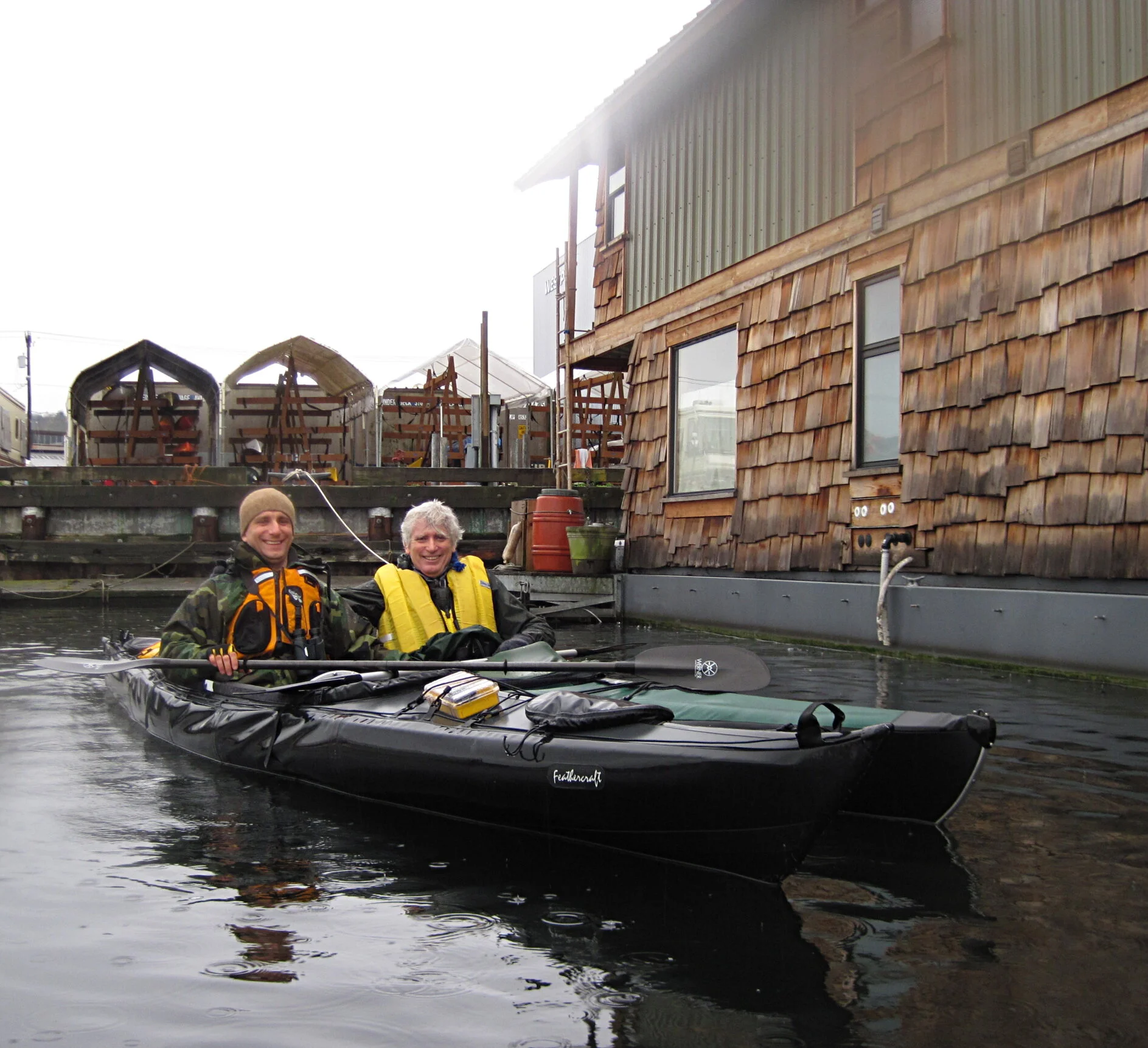 Alex and dad near Salmon Bay houseboat. Seattle’s Lake Union hosts residential, commercial, and industrial interests, all side by side.