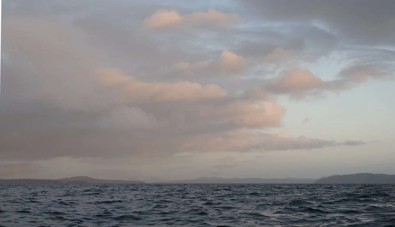 Clouds glowing in morning light over Haro Strait. Stratocumulus is the quintessential Pacific Northwest genus of cloud.
