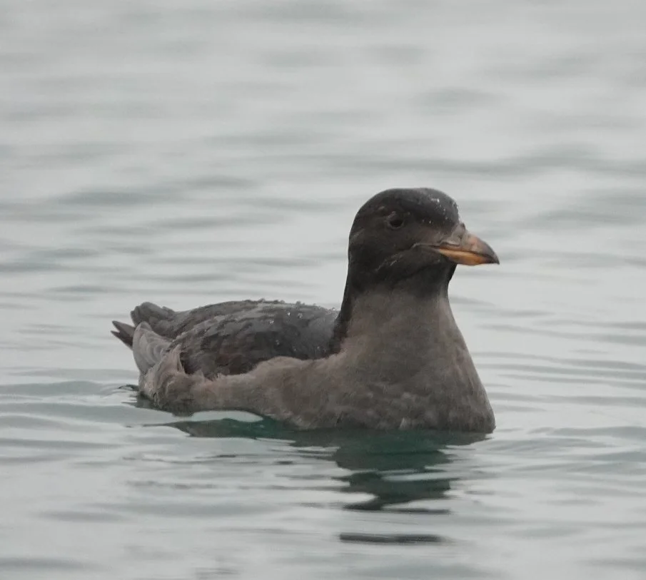Rhinoceros auklet near Mandarte Island. The dark eye color identifies this as an immature bird.