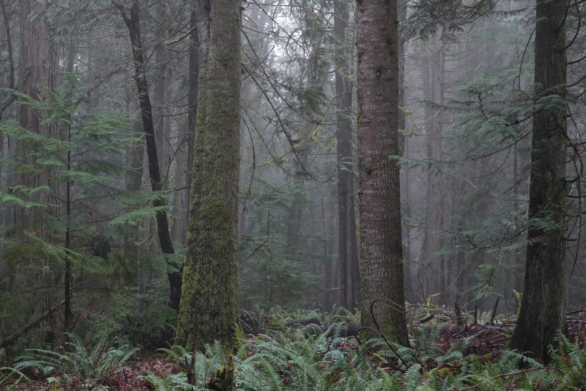 Foggy forest, Hope Island. The island was logged and farmed by settlers for many decades, but the forest is now starting to recover its original majesty.