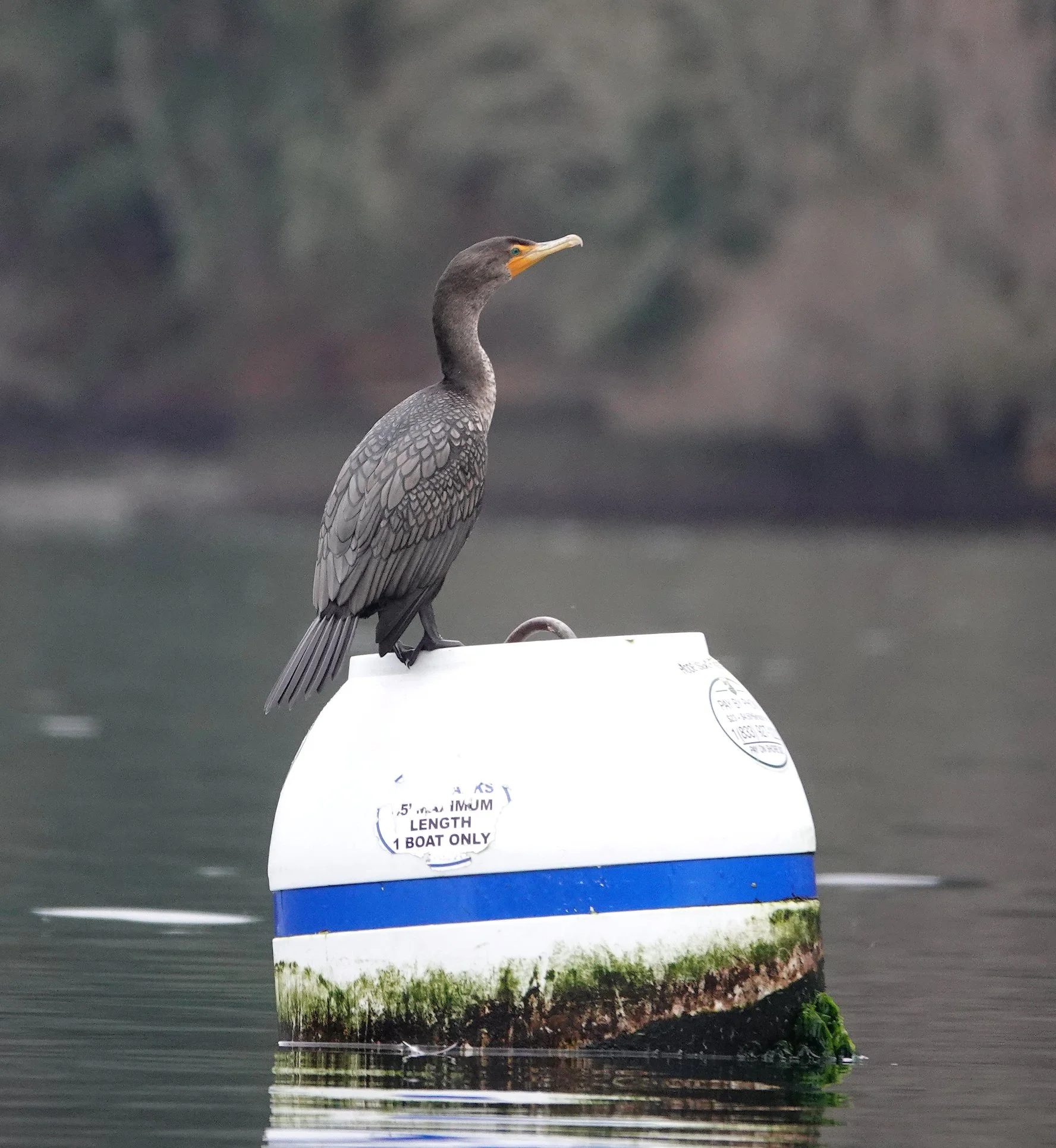 Double-crested cormorant on mooring buoy off Hope Island. In the absence of yachties, the cormorants made themselves at home.