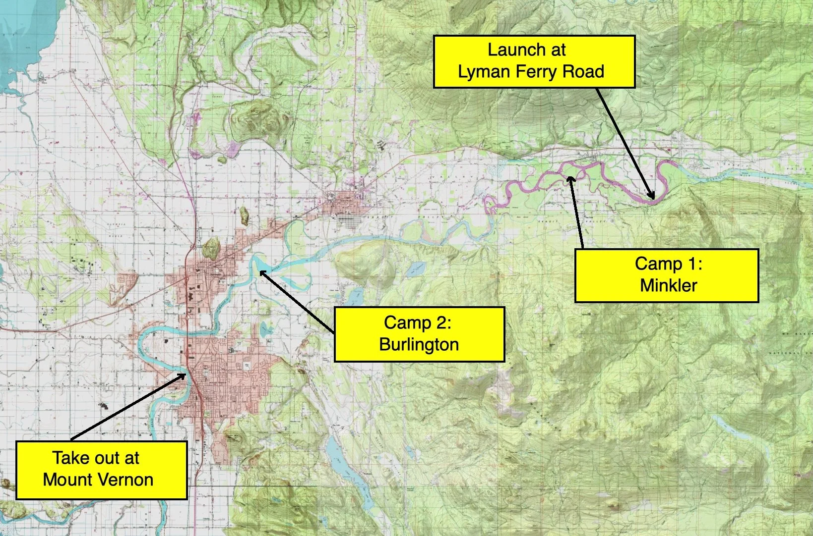 Route map. Grandpa John dropped us off in Lyman and picked us up two days later in Mount Vernon.