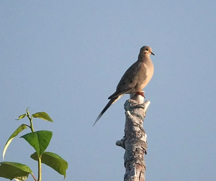 Mourning dove near Burlington. According to the US Fish and Wildlife Service, the mourning dove is the most hunted migratory game bird in North America, and sure enough, they do not like to be watched by humans.