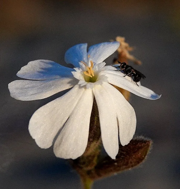 Mining bee on white campion. Much of the vegetation on the islands was non-native.