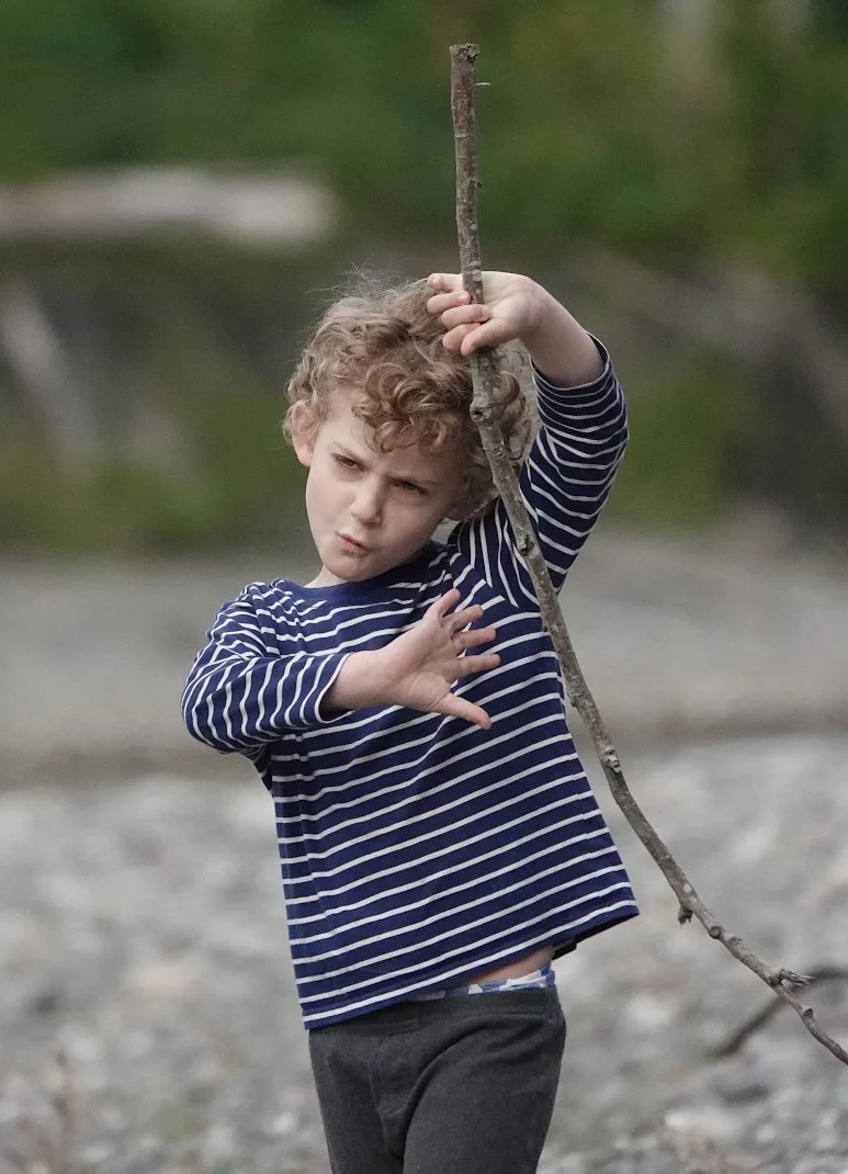 Leon playing with stick. No enemy ninja would dare face such a daunting opponent.